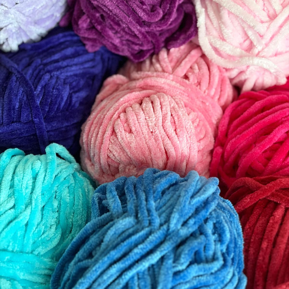 J’utilise principalement de la laine chenille certifiée OEKO-TEX. Il s’agit de fil 100% polyester. Pour certaines créations,